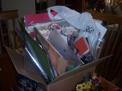 As you can see, there aren't any embellishments added just yet. This is a 7 Gypsies Gated Album. It turned out to be so thick after covering the pages with paper, that I had to remove the binding, added a larger one, but it still wasn't working out, remember, no embellies yet, except when you open it. I added some chip board and a leaf overlay. I could tell this album wasn't gonna work out, but I love this gated album. So, I went into the garage into my hubby's stash and found some black waxy kinda looking thick stringy stuff........ took the second binding out and used that. Now, I can add as many embellishments as I want, the book can now expand to however I want it. It's fun to go back and look at your home, how you decorated it, the things you had in it, this and that. Just yesterday, I was going through some old pics and came across our little house on the Springtown Golf Course in Livermore, CA. I couldn't believe it. I had pics of our son's room (he was 2 when we moved there) the kitchen (I was into blue country ducks, blue everything!) and the dining room and livingroom, one wall was even painted half way down in peach with a blue and peach country border. Oh, and I must not forget to mention the old turquoise ( isn't quite the color, it was darker and much uglier) carpet that everytime I vaccumed, the vaccum would suck up pieces of the carpet. That's when I thought I would ask the "owner" of our little home to please consider installing new carpet. I figured it was either yes or no-what did I have to loose, other than to keep making holes in the carpet. Well, he came through, and with all the excitement, he even let me pick out the color and texture! Ahh, what a beautiful dark peach color I choose, can you believe it? But I was happy. This new dark peach carpet completed our little home. All this in our cozy, comfy little home of approx. 800 square feet, two bedroom, two bath house on the 9th hole of the golf course. I'll make a pocket in the back of my album and add those pictures, what a treasure! I could see everything and what our son had as a "little guy", all his toys, and his Pound Puppy bedspread. What memories it brought back. I'm so happy I took those pics back then, and don't forget, I didn't even know scrapbooking even existed 20 years ago! Don't forget: making an album of your "HOME" is also good for your Home Owners Insurance. You never know. I even took pictures of my favorite treasures around my home...and yes, even my scraproom and all the items I use - Cricut Expression - Revolution, down to my trusty little tape runner! We all know that the most cherished and important is our "lives"- as we all know, love ones cannot be replaced. So, momentums and Scrappy stuff , jewerly, etc., are NOT covered under our Home Owner's Insurance unless you have a separate "rider" to cover these items. I was reading a blog: a woman that designs for Scrapbooking.com had a horrific fire in her home, the photos I viewed were unreal - unbelieveable, had she been in her bedroom, she wouldn't be here today. She's been scrapping for many years.........her beautiful albums, every little thing was gone. But that didn't matter, she and her family are safe and that's what counts. So this "HOME" album I am putting together is for good use as well. It will be in safe keeping along with my other things. Mmm, this album is taking longer than I thought. I think I will just keep adding the pics and go back and add some embellishments. Can you see my "Boston" sleeping on the floor near the T.V.?